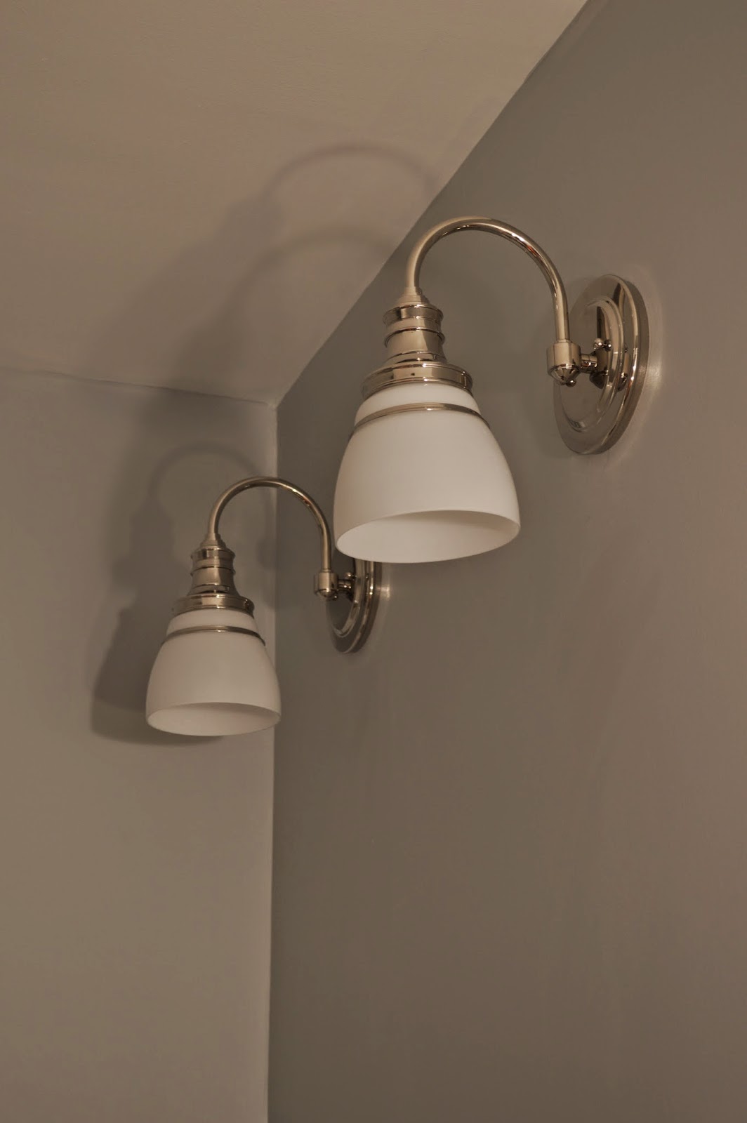 Staying budget friendly, I found these Martha Stewart sconces at Home Depot. I like the look of individual sconces instead of one giant light fixture. Had we had a bit more room, I probably would have put them more on the side of the mirror, but they work well above it.
